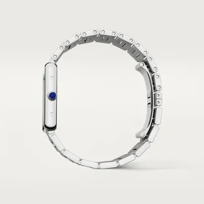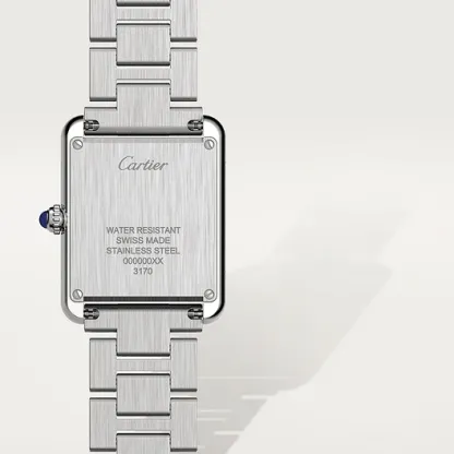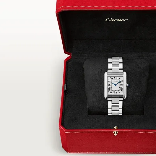 The Tank was first made popular by Louis himself. This icon features a carefully considered design with flat vertical brancards and a sapphire cabochon.